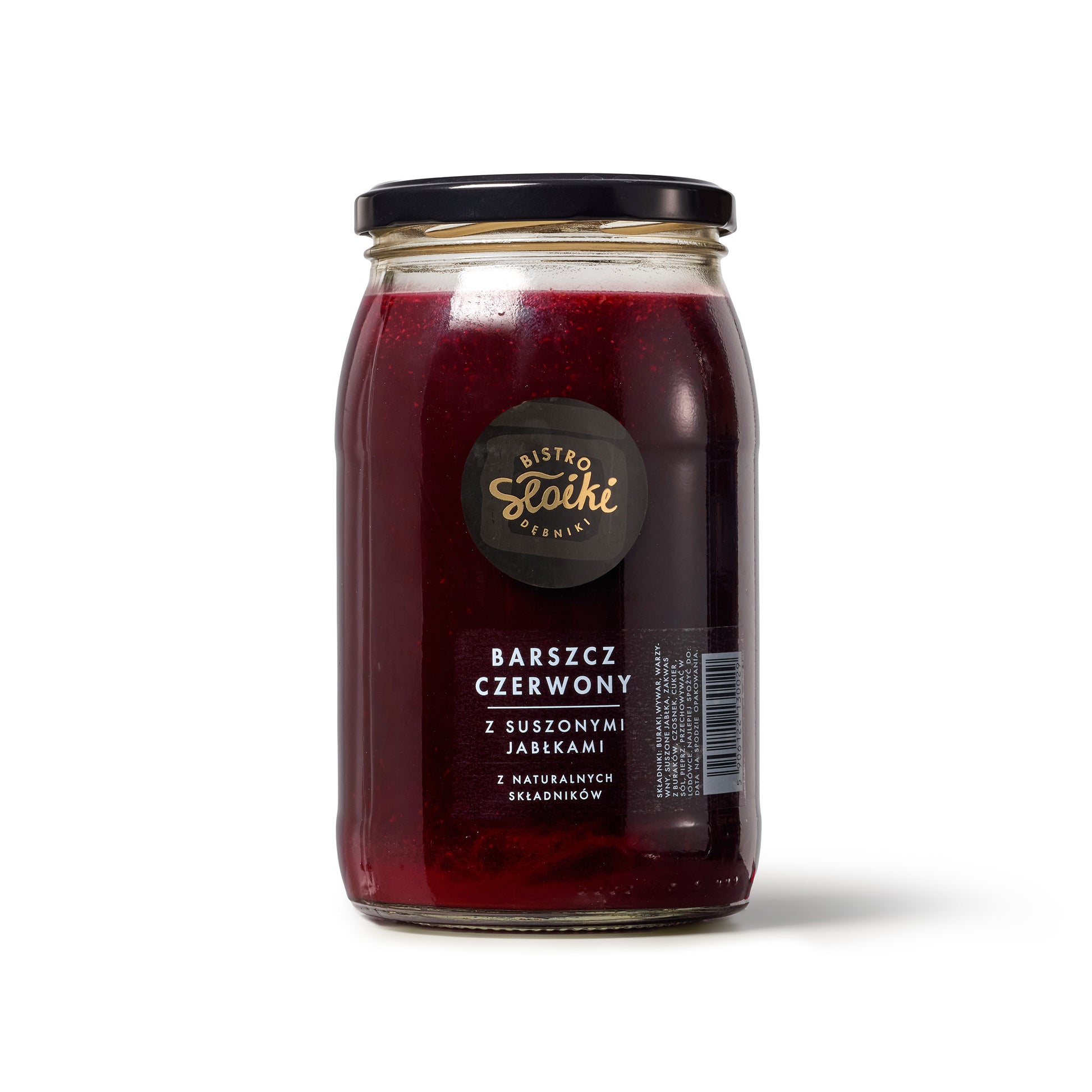 Skład: buraki, marchew, pietruszka, seler, wywar warzywny, suszone jabłka, zakwas z buraków, czosnek, cukier, sól, pieprz.