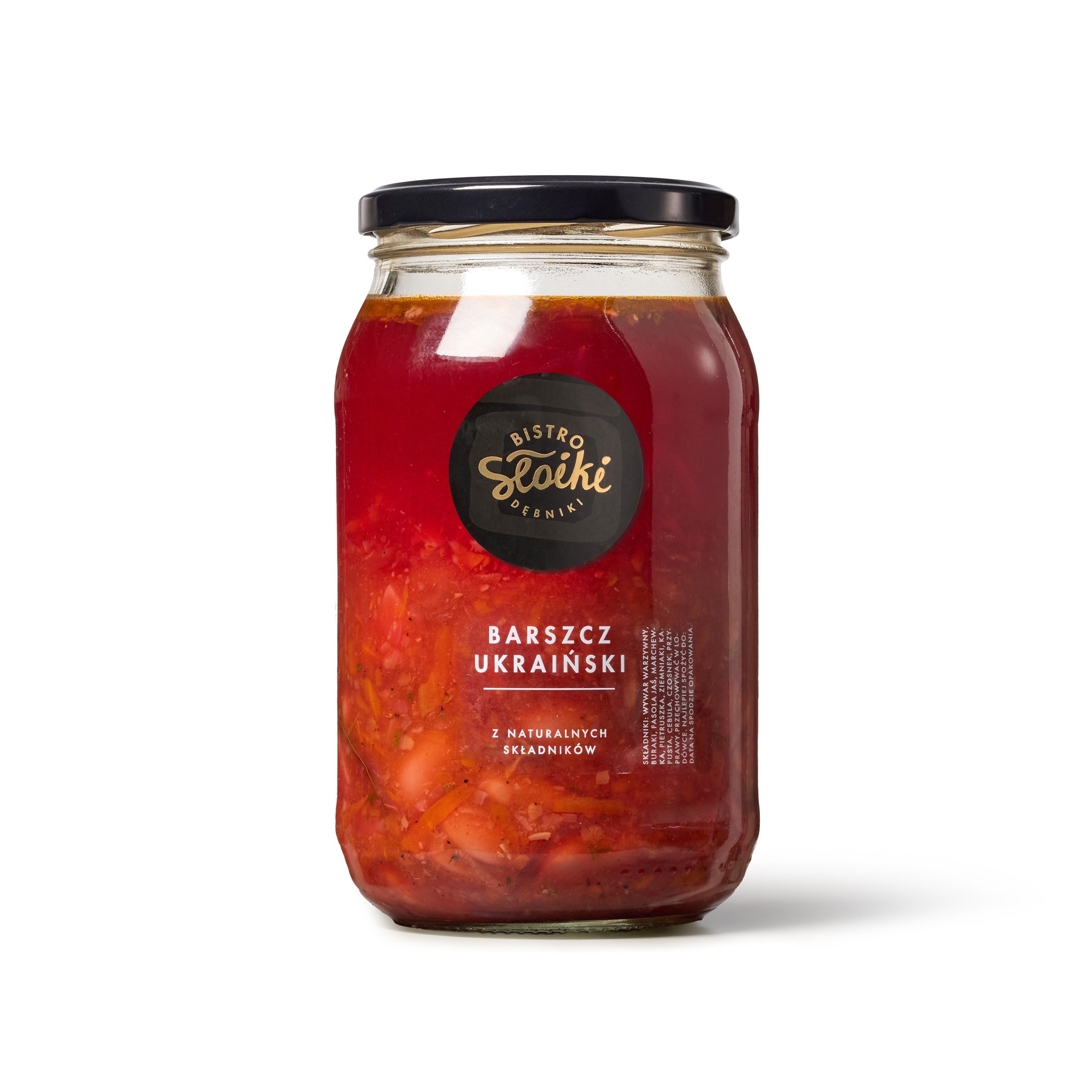 Skład: buraki, fasola, marchewka, pietruszka, seler, cebula, kapusta, papryka czerwona, ziemniaki, czosnek, cukier, majeranek, sól, pieprz.