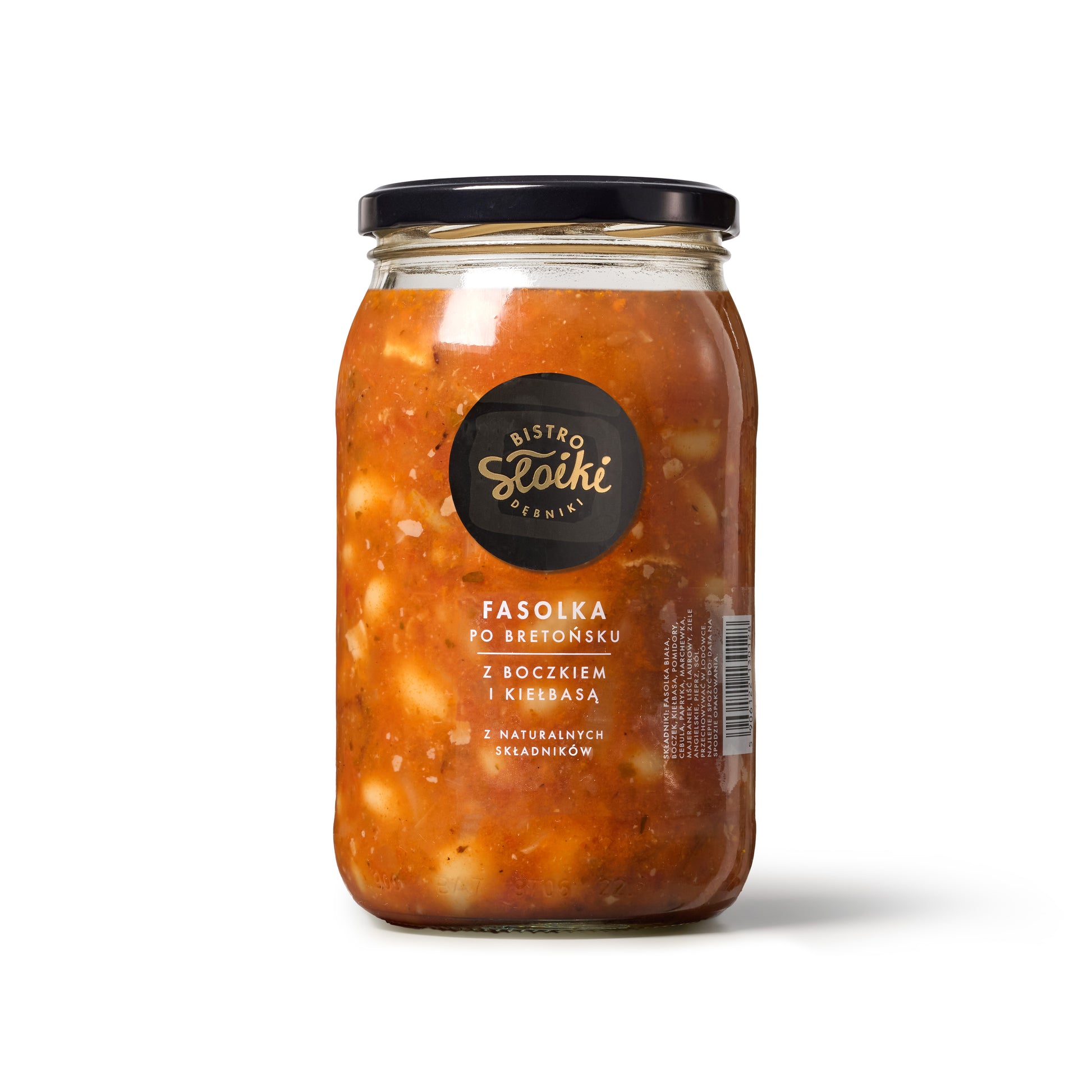 Skład: fasolka jaś, boczek wędzony, kiełbasa, pomidory, cebula, papryka słodka, marchewka, mąka pszenna, majeranek, liść laurowy, ziele angielskie, sól, pieprz, olej.